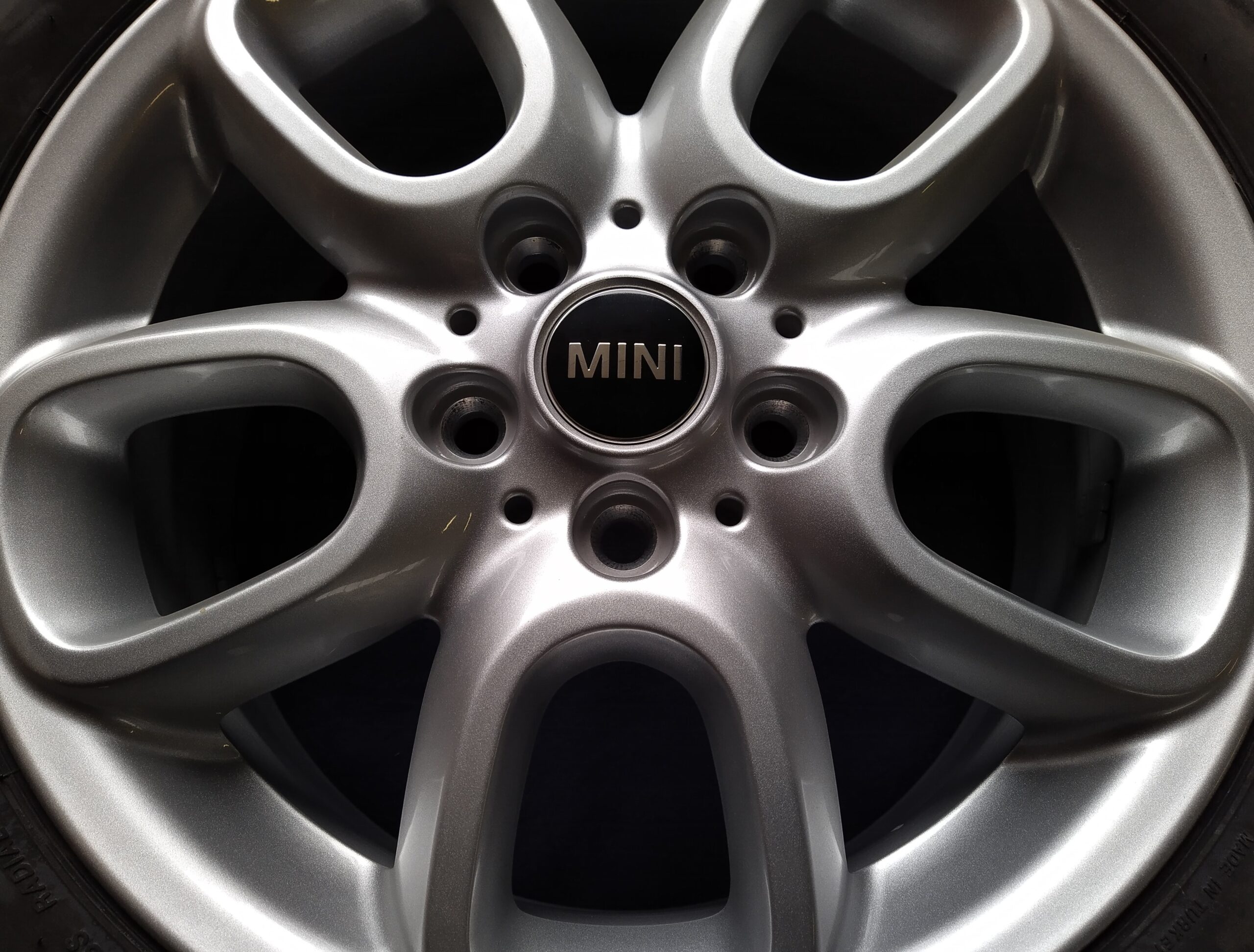 De MINI Loop Spoke velgen van deze winterwielset zijn zo goed als nieuw: schoon, recht en schadevrij.