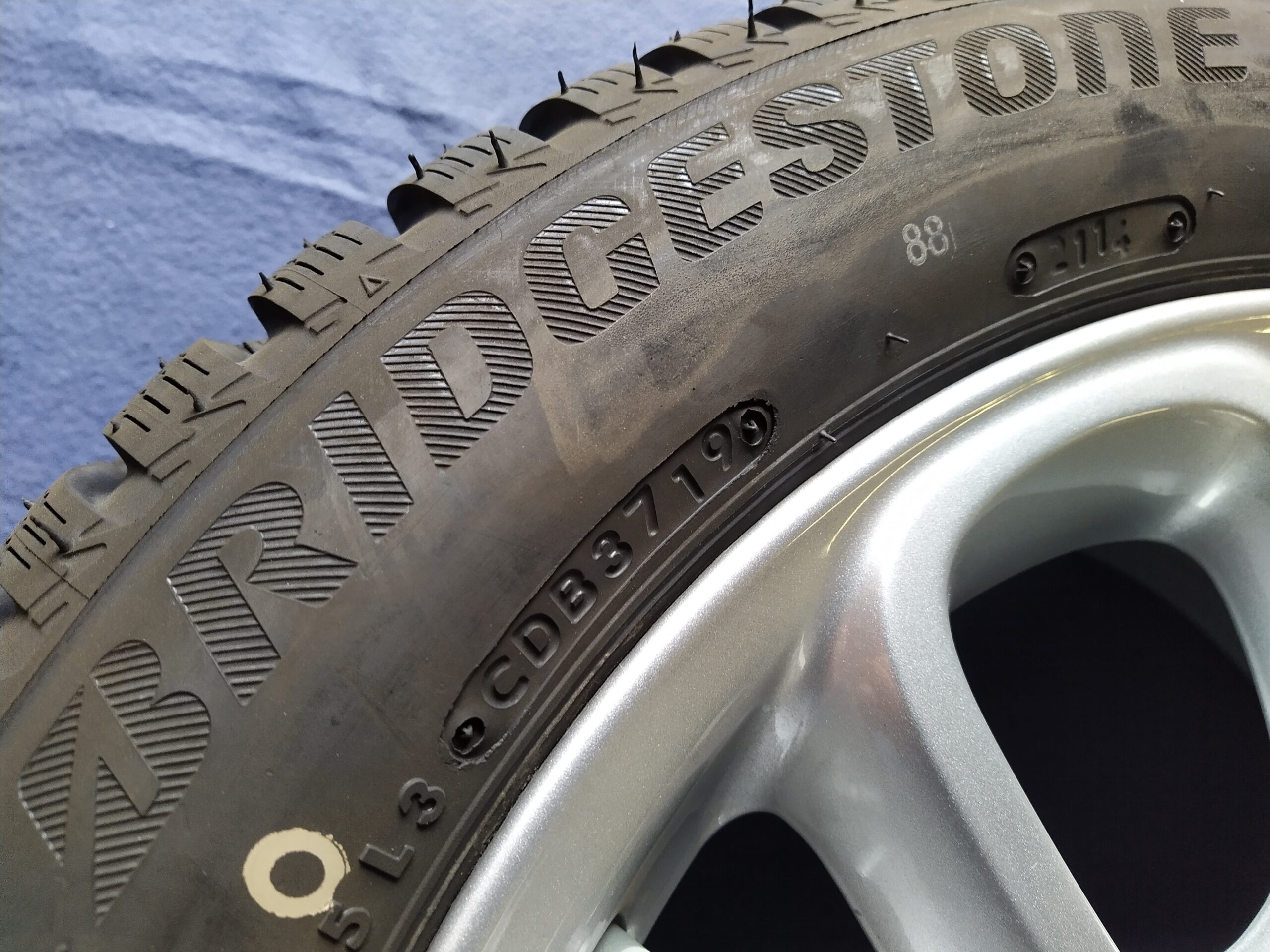 Zeer goede Bridgestone winterbanden met sneeuwvlok- / alpinemarkering (verplicht voor gebruik in oa. Duitsland en Oostenrijk).